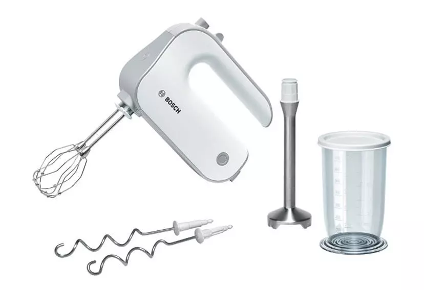 Bosch MFQ4070. Typ: Handmixer, Produktfarbe: Silber, Weiß, Kabellänge: 1,4 m. Leistung: 500 W, AC Eingangsspannung: 220 – 240 V, AC Eingangsfrequenz: 50 – 60 Hz. Gewicht: 1,43 kg. Abmessungen (BxTxH): 200 x 75 x 142 mm