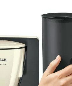 Bosch TKA6A047. Produkttyp: Filterkaffeemaschine, Kaffeezubereitungstyp: Halbautomatisch, Fassungsvermögen Wassertank: 1,25 l, Behälter für gebrühten Kaffee: Karaffe, Kapazität (in Tassen): 10 Tassen, Anzahl der Ausflüsse: 1. Leistung: 1200 W. Produktfarbe: Beige, Schwarz