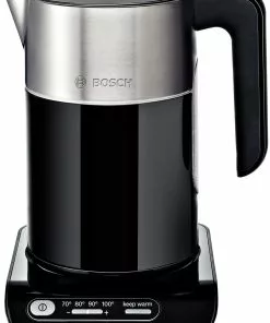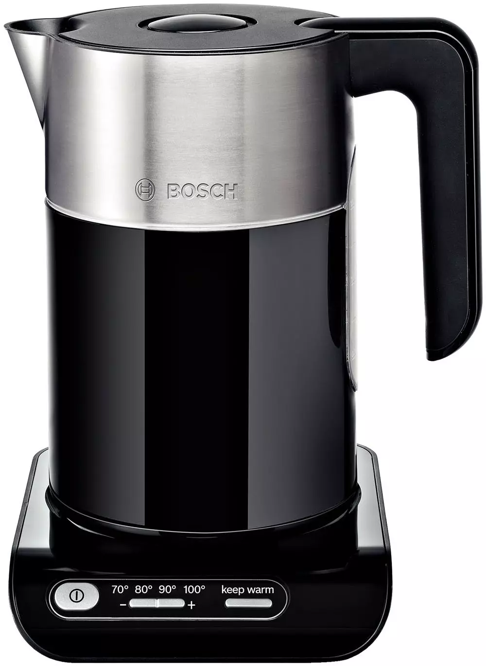 Bosch TWK8613. Fassungsvermögen Wassertank: 1,5 l. Leistung: 2400 W. Produktfarbe: Schwarz, Regelbare Temperatur, Wasserstandsanzeige, Überhitzungsschutz. Drahtlos. Filterung