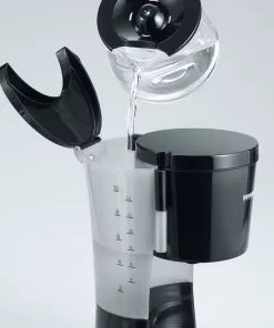 Zur Ausstattung dieser Kaffeemaschine gehören rutschfeste Füße, ein herausnehmbarer Filtereinsatz, ein Sicherheitsverschluss und ein Tropfstopp.