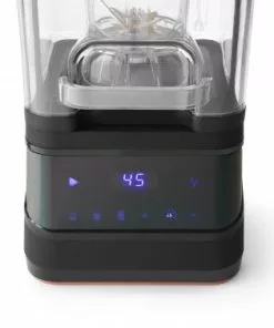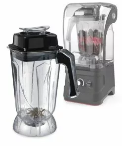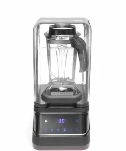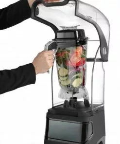 Dieser Standmixer mit hoher Leistung ist ideal geeignet zum Zerkleinern von Obst und Gemüse, Zubereiten von Smoothies, Cocktails und Desserts sowie Zerstoßen von Eis. Dank der Haube ist diese Mixerserie bis zu 25% leiser als herkömmliche Mixer. Austauschbares titaniumbeschichtetes Edelstahlmesser. Digitales Touch Bedienfeld mit 3 Leistungs- und Timereinstellungen, sowie Pulsfunktion. Schälldämpfende Schutzhaube aus Polycarbonat und Schutzschalter. Der Mixer arbeitet nur, wenn die Schutzhaube komplett geschlossen ist. Inklusive Polykarbonate 2,5 Liter-Kanne und Deckel, und Stössel aus PBT. Abnehmbare Kanne aus Polycarbonat, temperaturbeständig -40°C bis 90°C. Motor mit variabler Geschwindigkeitsregelung und Pulsschalter €“ Drehgeschwindigkeit von 8350 U/Min. bis zu 24800 U/Min. (ohne Belastung). Überhitzungs- und Überspannungsschutz.