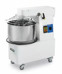 Schüssel und Kopf fest montiert. Schüsselinhalt: 20 Liter. Schüsselabmessungen: ⌀360x(H)210 mm. Maximal für 17 kg Teig geeignet. Gewicht: 59 kg.