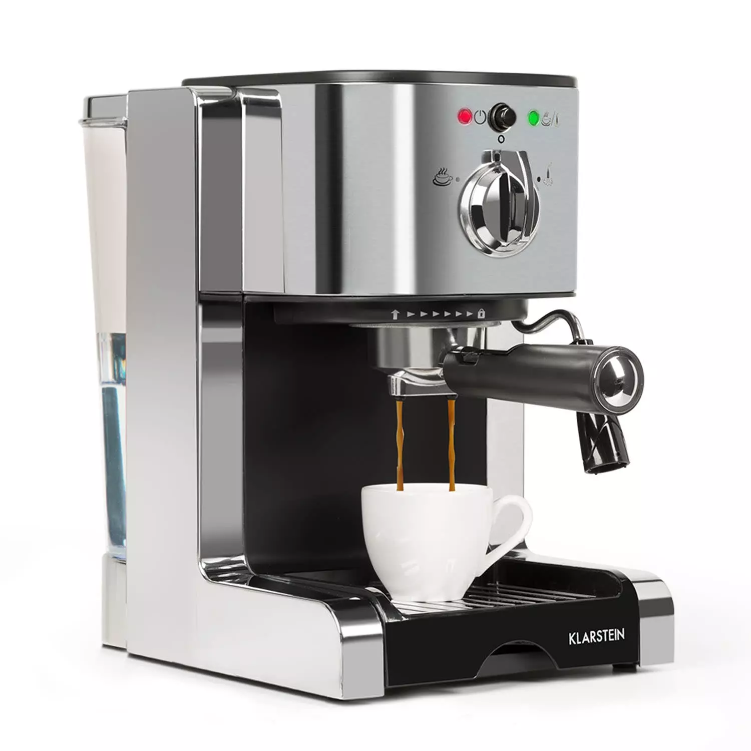 Für passionierte Kaffeegenießer: Lasse dich mit der Klarstein Arabica Comfort Espressomaschine von herrlichem Espresso, Cappuccino und Latte Macchiato auf Knopfdruck überzeugen. Dank der 90° Edelstahl-Aufschäumdüse und dem herausnehmbaren Milchtank kannst du die Milchschaum-Produktion jederzeit individuell regulieren. Außerdem steht es dir bei jeder Zubereitung frei, deinen Kaffee gemahlen oder mit einem praktischen Kaffee-Pad aufzubrühen. Selbst die Reinigung gestaltet sich durch den abnehmbaren 1,8 Liter Wassertank und das abwaschbare Tropfgitter denkbar einfach.
