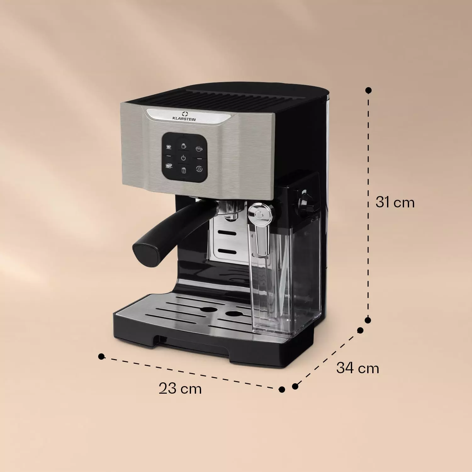 Mit der Klarstein BellaVita Kaffeemaschine die artenreiche Vielfalt der Kaffeewelt genießen! Dank einfacher Zubereitung undOne-Touch Control sind aromatischer Genuss und formvollendeter Geschmack vorprogrammiert. Mit kraftvollen 1450 Watt Leistung und 20 Bar Druck presst die Klarstein BellaVita heißes Wasser durch die gemahlenen Kaffeebohnen und entfaltet so ihr volles Aroma. Dabei kannst du nach Wunsch Espresso, Cappuccino oder Latte Macchiato brühen.