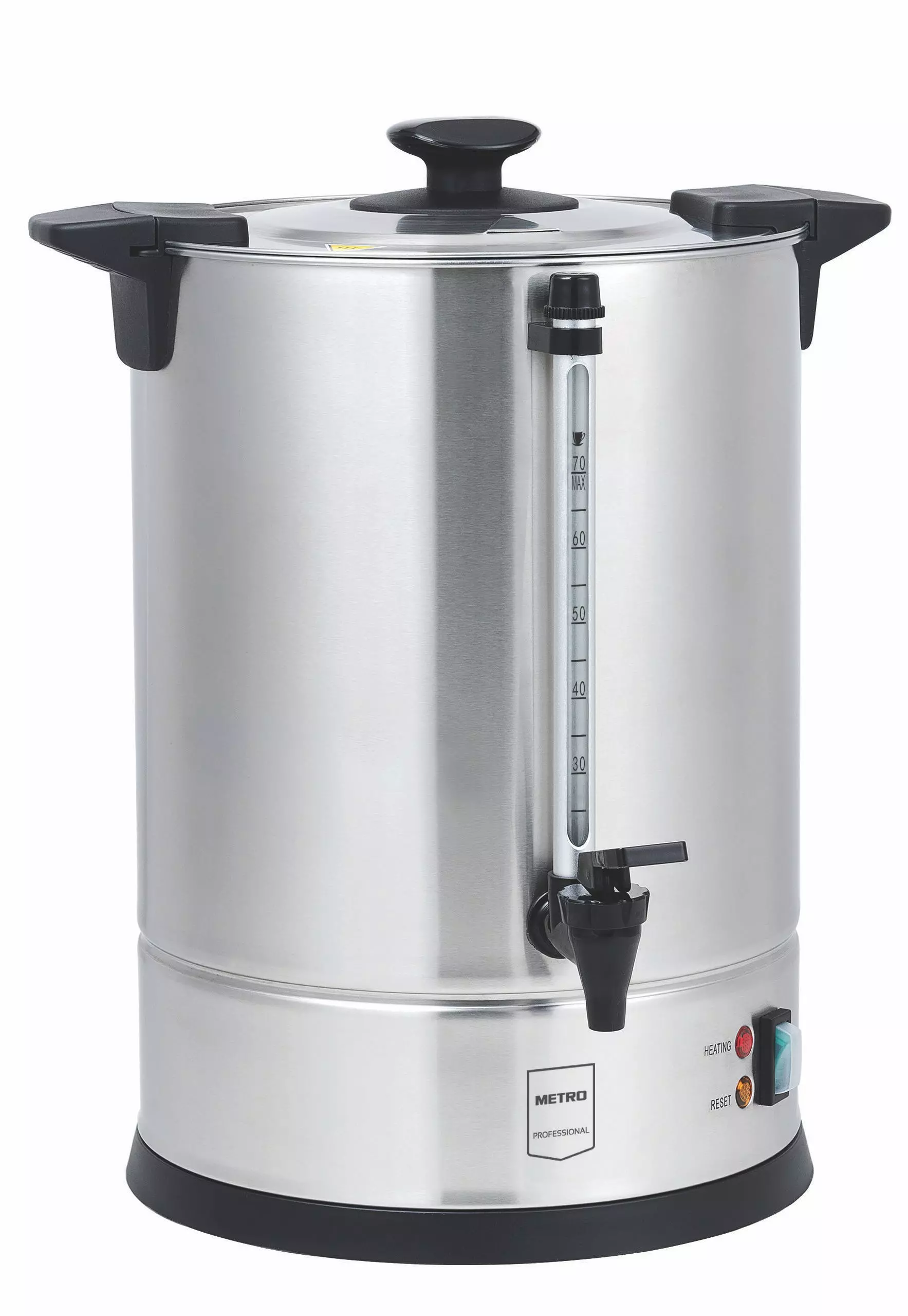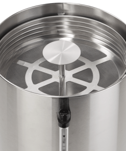 Die METRO Professional Kaffeemaschine GCM4011 hat eine Leistung von 1650 W und ein Fassungsvermögen von 10.5 L (entspricht ca. 70 Tassen). Die Oberfläche des Produkts lässt sich leicht reinigen und besteht aus Edelstahl 304. Der Deckel verfügt aus Sicherheitsgründen über einen Drehverschluss. Außerdem verfügt das Produkt über ein Heizelement aus Aluminium und eine Warmhaltefunktion. Das Produkt hat einen Überhitzungsschutz sowie eine automatischen Reset-Funktion. Das Produkt hat die folgenden Maße: 35 x 38 x 43.2 cm (B x L x H)