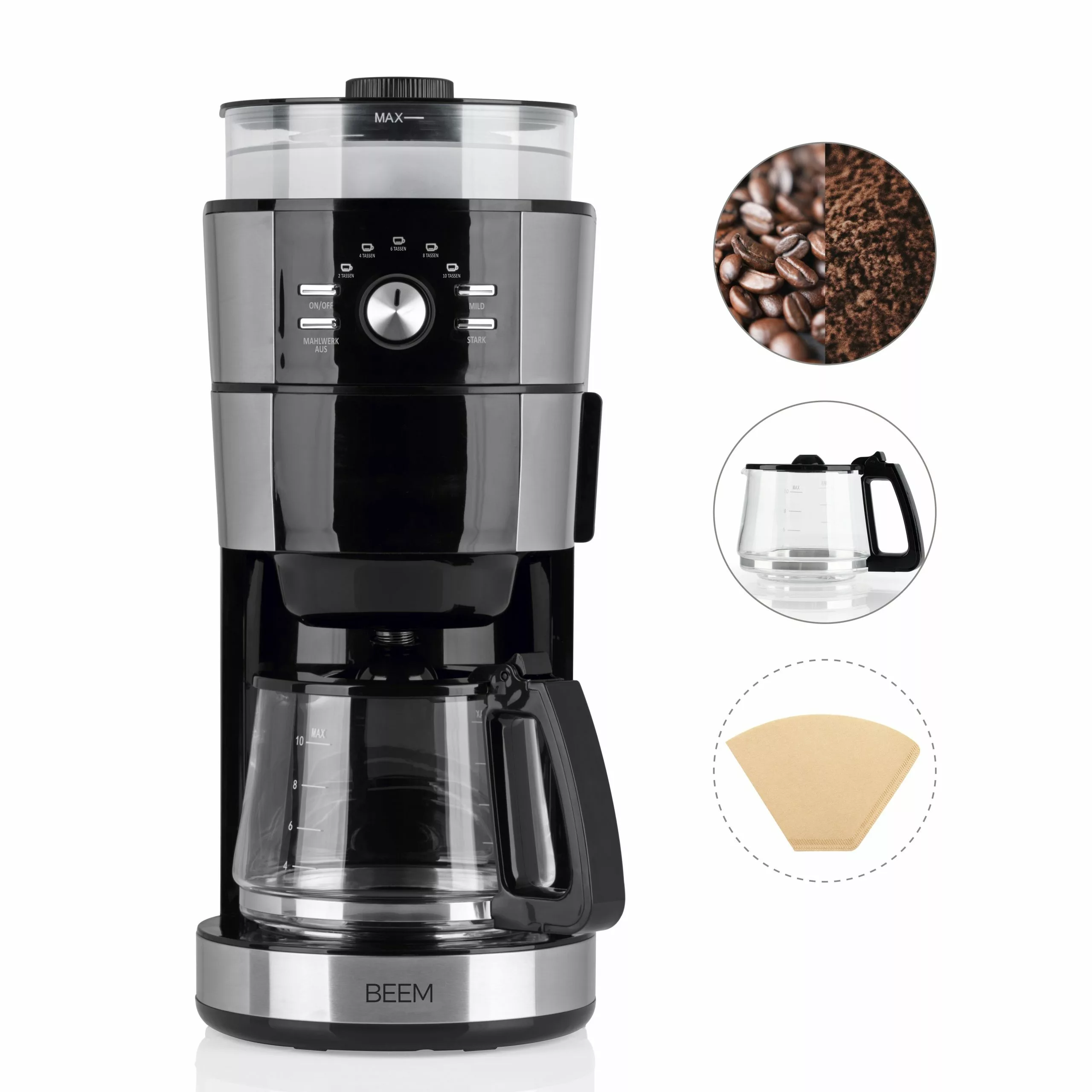 Kaffeegenuss in Ruhe oder mit Freunden – die BEEM FRESH-AROMA-PURE Filterkaffeemaschine macht´s möglich. Bis zu 10 Tassen können in der formschönen Glaskanne bereitgestellt werden. Die besonders einfache und damit unkomplizierte Bedienung über nur einen Knopf sowie moderne Komfort-Funktionen wie Tropfstopp und außenstehende Wasserfüllmengen-Anzeige machen diese Filterkaffeemaschine ideal für alle, die einfach nur Kaffee möchten. Kompakt und in zeitlos schlichter Edelstahl-Eleganz integriert sich die BEEM FRESH-AROMA-PURE in jede Küche.