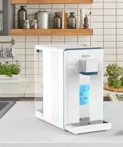 Wenn Sie das Modell BEM LINA mit Wassertank kaufen, erhalten Sie eine moderne und vielseitige Wasserfilteranlage mit sechs Temperatureinstellungen von 10 °C bis 100 °C. Als Wassermenge können Sie auf Tastendruck entweder einen Small Cup mit 150 ml oder einen Big Cup mit 300 ml wählen. Das Wasser wird dank Umkehrosmose sofort gereinigt und innerhalb von 3 Sekunden auf die gewählte Temperatur erhitzt. Mit der Entsperrungstaste hat die Anlage einen Verbrühungsschutz und kann auch von Kindern bedient werden. Durch die spezielle Beschichtung wird verhindert, dass sich das Gehäuse des schönen Tischgeräts erwärmt.