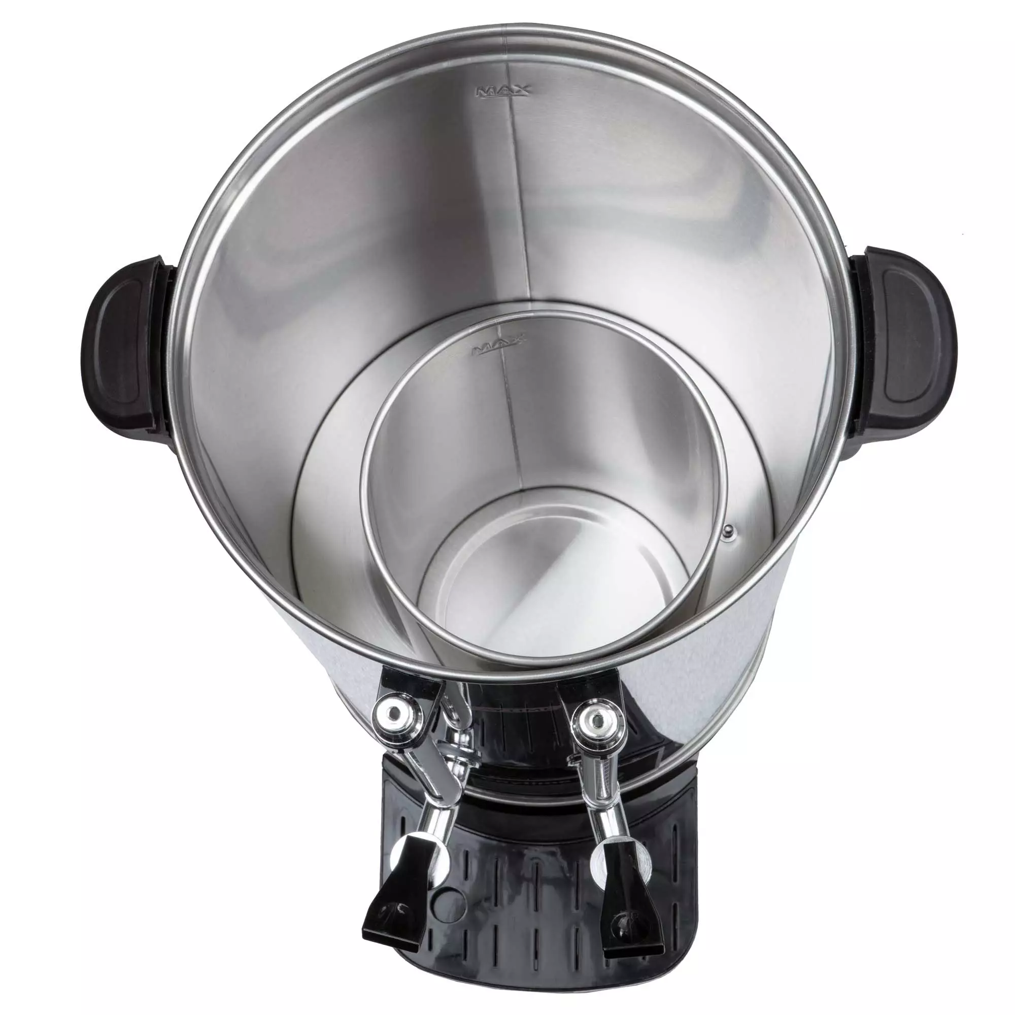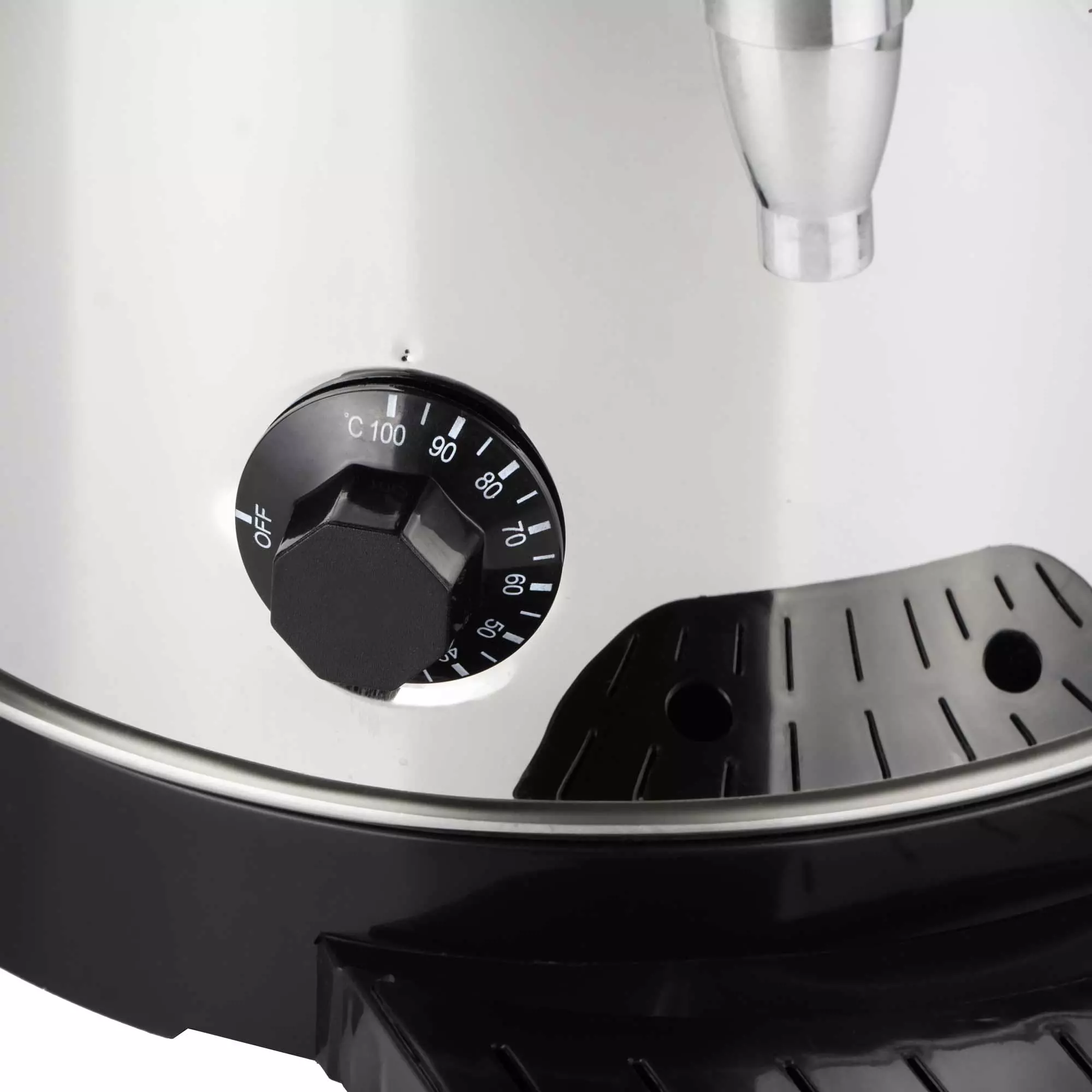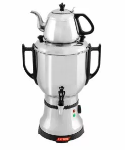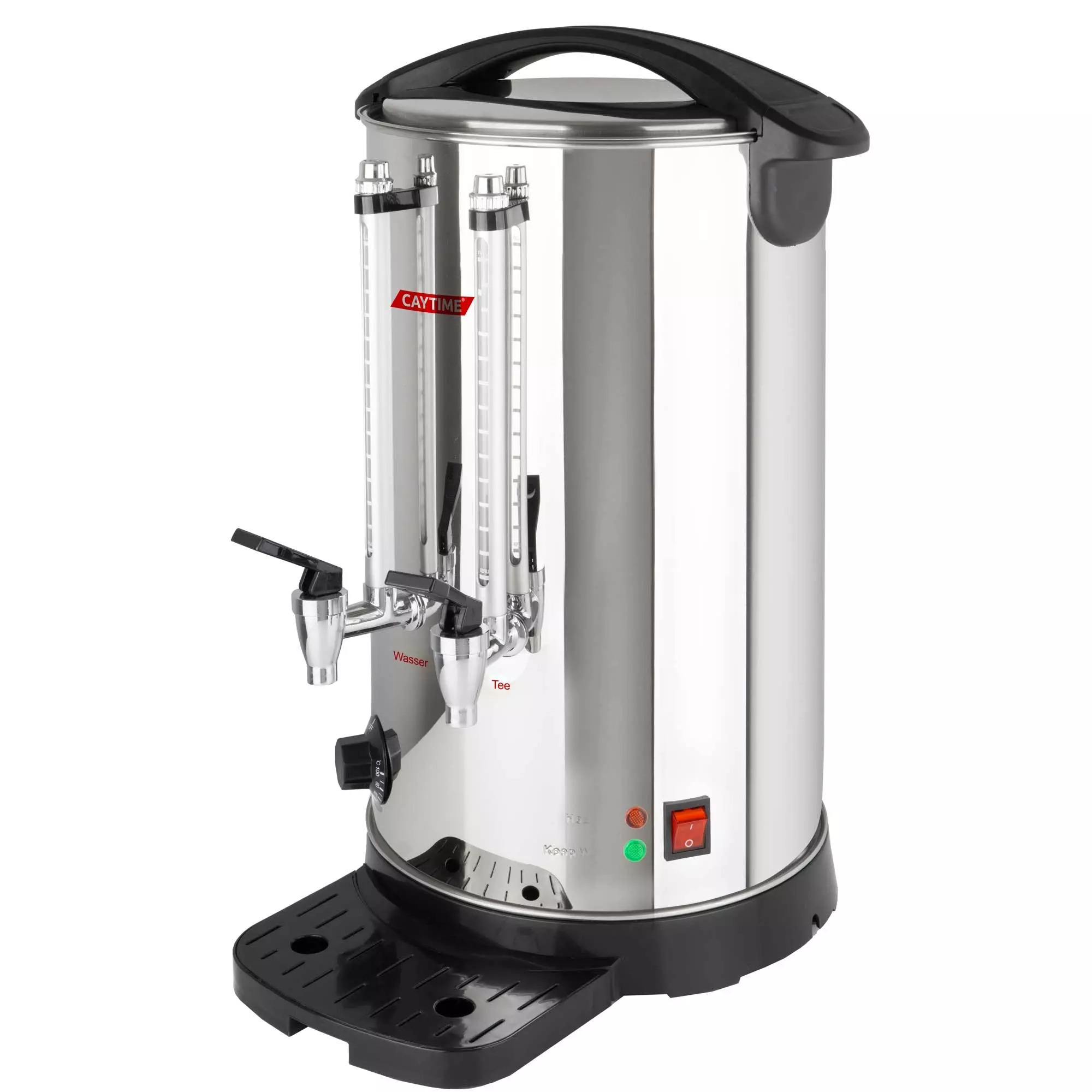 Mit der Caytime Teemaschine haben Sie die Möglichkeit, den perfekten Teegeschmack zu erzielen.Sie ist leicht zu bedienen und hat eine Einstellmöglichkeit der Temperatur. Die Temperatur wird mit dem Einstellknopf eingestellt und verfügt über eine Warmhaltefunktion bei der die Temperatur stufenlos zwischen 30 und 95 °C gewählt werden kann.Für Tee und Warmwasser sind zwei Hähne aus Edelstahl angebracht. Somit können jederzeit auch andere Getränke die warmes Wasser benötigen zubereitet werden. Durch die doppelwandige Bauweise wird die Wärme länger im Teebehälter gehalten. Dadurch sinken die Stromkosten erheblich.Der Zubereitungsprozess wird dadurch deutlich erleichtert und ein immer gleichbleibende Qualtät ist gewährleistet.Darüber hinaus verfügt die Teemaschinen über eine Warmhaltefunktion für langen Teegenuß, ohne jedesmal den Tee neu zubereiten zu müssen.Ebenso lassen sich größere Teemengen problemlos zubereiten. Das Gehäuse, Teefilter, Hähne vom Tee Automat Caytime ist aus rostfreiem Edelstahl gefertigt und ist für Dauereinsatz konzipiert.
