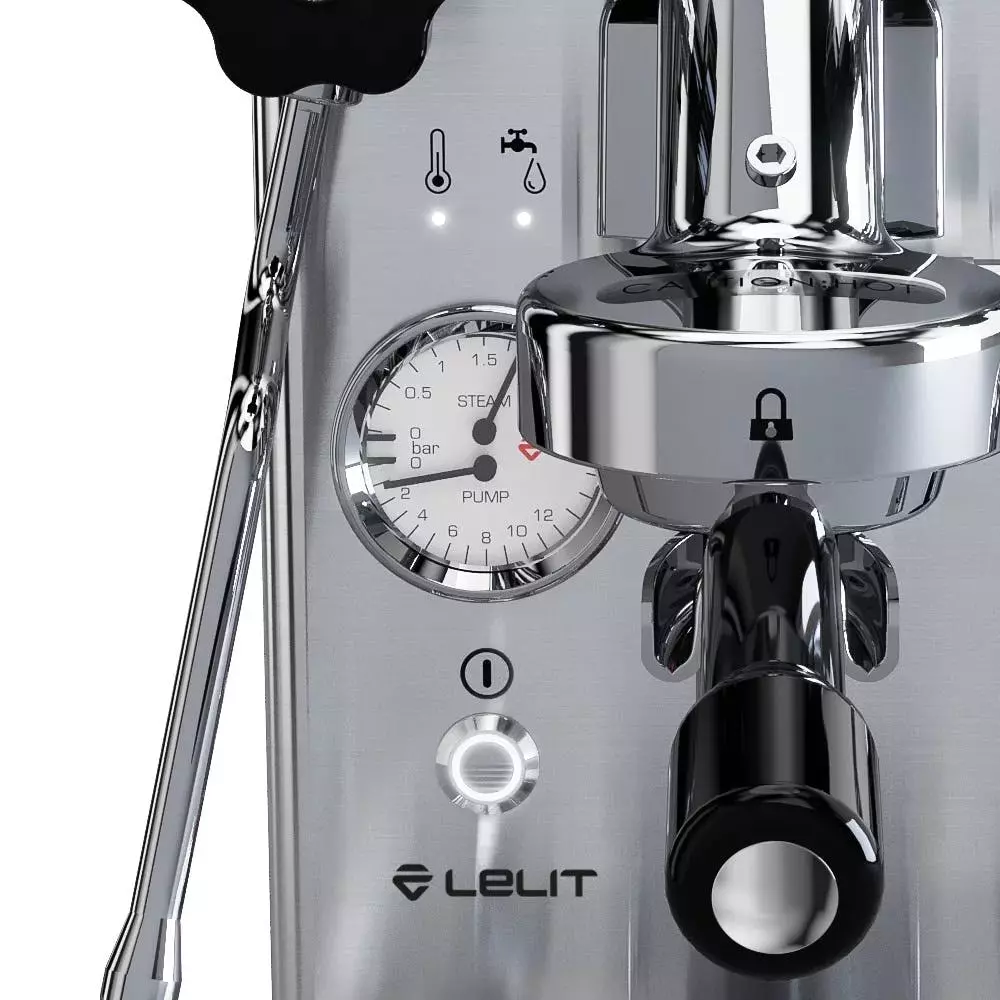 Mit der zweikreisigen Lelit MaraX PL62X Siebträgermaschine mit automatischer Brühtemperaturregelung gelingt die Zubereitung eines Espressos im Handumdrehen. Die Maschine verfügt über eine manuelle E61-Brühgruppe, einen isolierten Edelstahlkessel sowie einen einfach zugänglichen 2,5l Frischwassertank. Die Brühtemperatur kann dank voreingestellter PID-Steuerung einfach per Kippschalter gewählt werden. Die eingebaute Pumpe sorgt dafür, dass die Lelit MaraX bei der Zubereitung besonders leise ist. An dem Manometer kann an der Maschine zudem jederzeit der Boiler- sowie der Pumpendruck abgelesen werden.