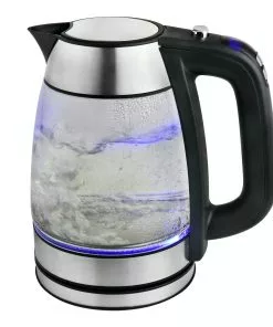 •Lentz 1,7 Liter Glas-Wasserkocher mit LED-Beleuchtung kabelloser Glaswasserkocher mit 2200 Watt (Schwarz)