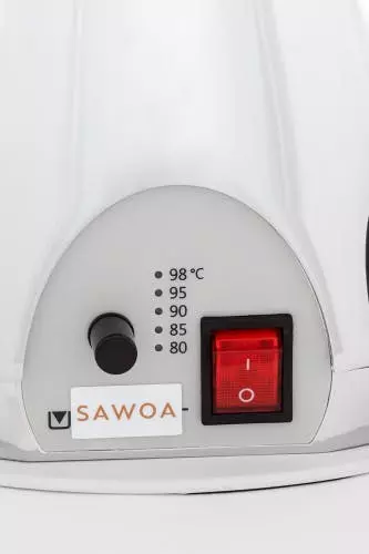Der SAMORAI, wird aus hochwertigem Edelstahl gefertigt. Der Wassertank hat ein Fassungsvermögen von 5 l Wasser. Durch seine Elektronik kann der SAMORAI die Wassertemperatur zwischen 80° und 98°C regulierbar und somit ist der SAMORAI auch für grünen Tee bestens geeignet. Die elektronische Steuerung schaltet beim Erreichen der eingestellten Temperatur automatisch ab und die Heizung wird elektronisch reaktiviert sollte sich das Wasser abkühlen. Somit gewährleistet der SAMORAI eine nahezu konstante Wassertemperatur. Durch seine Doppelwandigkeit aus hochwertigem Edelstahlgehäuse ist eine hohe Energieeffizienz gegeben. Durch seine ergonomische Form ist der SAMORAI leicht zu reinigen und sehr einfach in der Handhabung bzw. Bedienung.