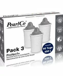Ökologisch Vermeidung von Plastikmüll Sparsam Verzichten Sie auf Plastikflaschen Reiner Geschmack Speisen und Getränke entfalten ihr volles Aroma PearlCo Classic Protect+ PearlCo Classic Wasserfilter-Kartuschen optimieren ihr Leitungswasser mit hygienischer Filtertechnik. Der Kalkgehalt des Wassers wird deutlich reduziert, ebenso der Anteil an Schadstoffen wie Blei und anderen Schwermetallen. Gleiches gilt für geschmacklich störendes Chlor und viele weitere, im Trinkwasser unerwünschte Stoffe. Die Filterung erzeugt aromatisches, geschmackvolles Wasser, das für die Zubereitung von Speisen und Getränken oft viel besser geeignet ist als ungefiltertes Leitungswasser. Besonders groß ist der Unterschied bei Tee und Kaffee: Beide Getränke werden nicht nur sichtbar klarer, sondern schmecken auch deutlich besser! Bei der Zubereitung heißer Getränke fallen die Vorteile der Kalkreduzierung zudem besonders ins Gewicht: Kaffeemaschinen, Wasserkocher und ähnliche elektrische Geräte verkalken bei der Verwendung PearlCo-gefilterten Wassers viel weniger und halten deshalb auch länger.