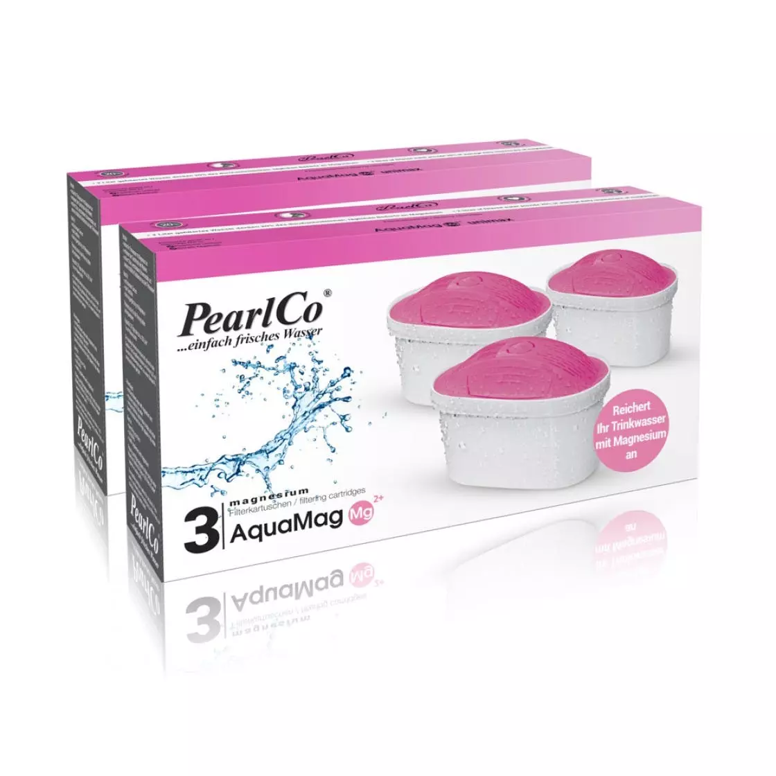 Ökologisch Vermeidung von Plastikmüll Sparsam Verzichten Sie auf Plastikflaschen Reiner Geschmack Speisen und Getränke entfalten ihr volles Aroma PearlCo unimax AquaMag PearlCo AquaMag unimax Wasserfilter-Kartuschen vereinen zwei Funktionen in einer Filterkartusche: Wie die bewährte PearlCo unimax Universal Kartusche entfernt auch die AquaMag-Kartusche geschmacklich störende und teils sogar schädliche Fremdstoffe aus Ihrem Leitungswasser, darunter Kalk, Chlor, Kupfer und Blei.Darüber hinaus geben AquaMag-Kartuschen Magnesium in das gefilterte Wasser ab – ein wichtiger Beitrag für Ihre Gesundheit. 2 Liter mit einer AquaMag-Kartusche gefiltertes Trinkwasser versorgen Ihren Körper bereits mit 20% des täglich benötigten Magnesiums.Wie die regulären PearlCo unimax Universal Filterkartuschen erzeugt auch die AquaMag-Kartusche aromatisches, geschmackvolles Wasser, das für die Zubereitung von Speisen und Getränken oft viel besser geeignet ist als ungefiltertes Leitungswasser Universal vielseitig einsetzbar Protect+ bei sehr hartem Wasser AquaMag extra Magnesium Alkaline erhöht den pH-Wert Der bewährte Standard gegen Kalk Der neue Standard für starken Kalkschutz Gefiltertes Wasser mit extra Magnesium Perfekt für eine basische Ernährung Mehr Mehr ausgewählt bald erhältlich Kapazität je nach Wasserhärte bis 200 Liter bis 200 Liter bis 200 Liter bis 200 Liter Verwendung Zum Kochen, für Heiß- und Kaltgetränke Zum Kochen, für Heiß- und Kaltgetränke Kaltgetränke oder einfach pur Einfach pur, basische Ernährung Reduziert Kalk ++ +++ + – Reduziert organische Stoffe Entfernt Chlor Gegen Blei u.a. Schwermetalle Für Sprudler geeignet – Passt zu PearlCo unimax, BRITA Maxtra (nicht Maxtra+) PearlCo unimax, BRITA Maxtra (nicht Maxtra+) PearlCo unimax, BRITA Maxtra (nicht Maxtra+) PearlCo unimax, BRITA Maxtra (nicht Maxtra+) Auf einen Blick Universelle, preisgünstige Filterkartusche Wirksame Entkalkung auch in Gegenden mit sehr hartem Wasser Für besten Geschmack und ein Plus an Magnesium Hebt den pH-Wert des Wassers an, für eine sanfte Ernährungsweise