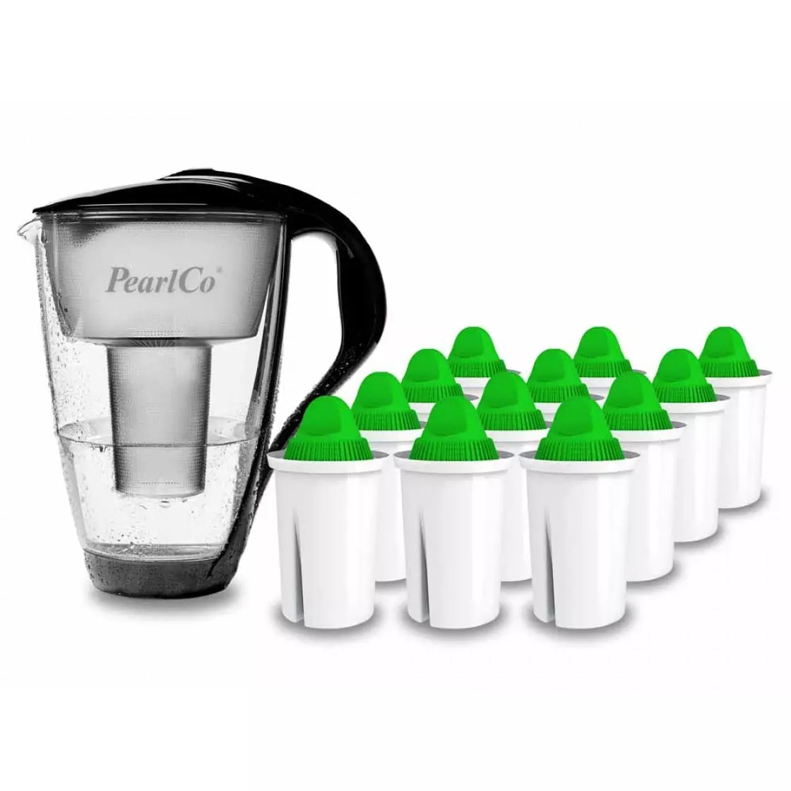 Pearlco Glas-Wasserfilter Anthrazit Inkl. 3 Alkaline Filterkartuschen