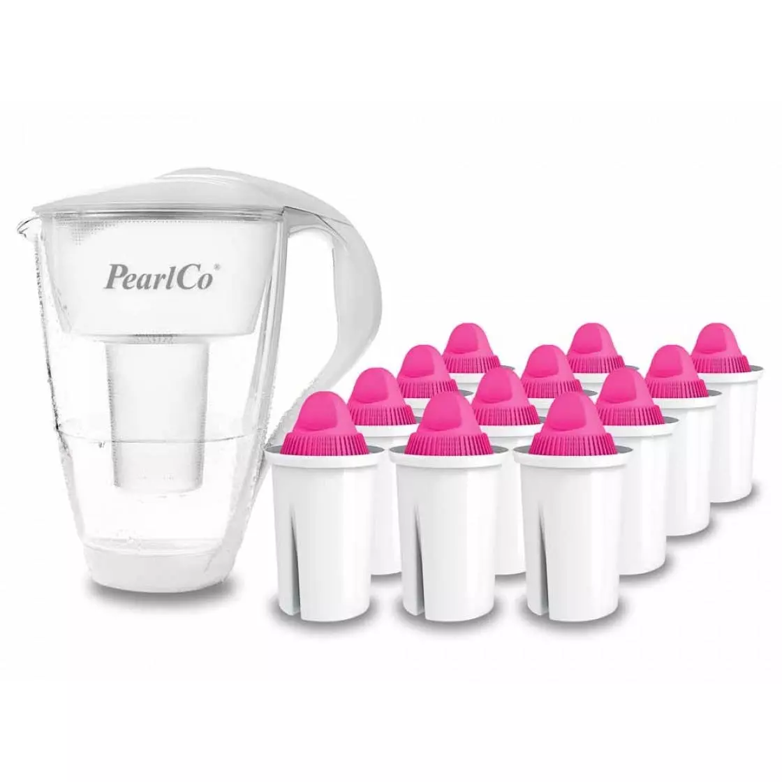 Pearlco Glas-Wasserfilter Schwarz Inkl. 12 AquaMag Filterkartuschen