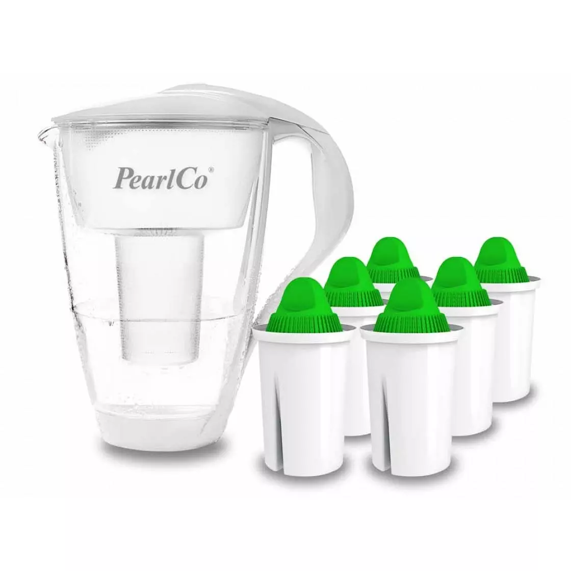 Pearlco Glas-Wasserfilter Weiß Inkl. 12 Alkaline Filterkartuschen