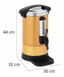 Sie benötigen eine Maschine, die dem Kaffeekonsum Ihrer Kunden gewachsen ist? Dann ist die Filterkaffeemaschine RC-WBDWTC6GO von Royal Catering das passende Produkt für Sie. Der Kaffeeautomat eignet sich nicht nur für die Herstellung großer Mengen Kaffee, sondern auch zum Aufbrühen und Warmhalten leckerer Tees oder gesunder Kräutermischungen. Den Kaffeebehälter befüllen Sie mit 580 g g Kaffeepulver, den Filter entnehmen Sie einfach zur Reinigung. Mit der 6-l-Filterkaffeemaschine sparen Sie Zeit bei der Herstellung großer Mengen Kaffee und stellen Ihren Kunden oder Mitarbeitern einen perfekten Begleiter durch den Tag zur Seite. multifunktional sicher kühle Haltegriffe ermöglichen Transport ohne Verbrühungen geräumig – 6 l Fassungsvolumen (ca. 43 Tassen) hygienisch – mit Ausschenkhahn und Abtropfschale einfach – intuitive Bedienung und schnelle Reinigung