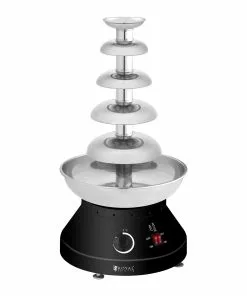 Schokoladenbrunnen – 5 Etagen – 4 L Bieten Sie Ihren Gästen ein besonderes Genusserlebnis mit dem Schokobrunnen RCCF-210 von Royal Catering! Im Restaurant, Hotel oder bei Großveranstaltungen, wie Hochzeiten, Geburtstagen, Banketts und anderen Feierlichkeiten, können Sie mit diesem Eyecatcher dank seiner Vielfältigkeit nahezu jeden Gast erfreuen. Der Schokoladenbrunnen dient als Fonduegerät, welches wahlweise Schokolade erst erwärmt und schmilzt, damit diese im Anschluss wasserfallartig über alle Brunnenebenen fließt. Aber nicht nur Schokolade, sondern auch Nacho-Käse, Karamell, Sirup, Soßen oder andere Cremes sind vielseitig einsetzbar, sodass je nach Vorlieben verschiedene Produkte, unter anderem Obst, Kekse, Waffeln, Eis oder herzhafte Nachos und Pommes unter die Fontäne gehalten werden können.
