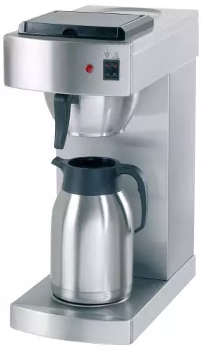 Material: (Gehäuse und Filterkorb) Edelstahl. Doppelwandiges Gehäuse gewährleistet eine Oberflächentemperatur von max. 30 °C. Peilglas. Sicherheitszapfhahn, Überhitzungsschutz. Verriegelbarer Deckel. Brüh- und Warmhaltefunktion durch separate Heizsysteme. Ideal für den Hotel-Frühstückstisch, Cafés, Clublokale, Büros, Altenheime usw.
