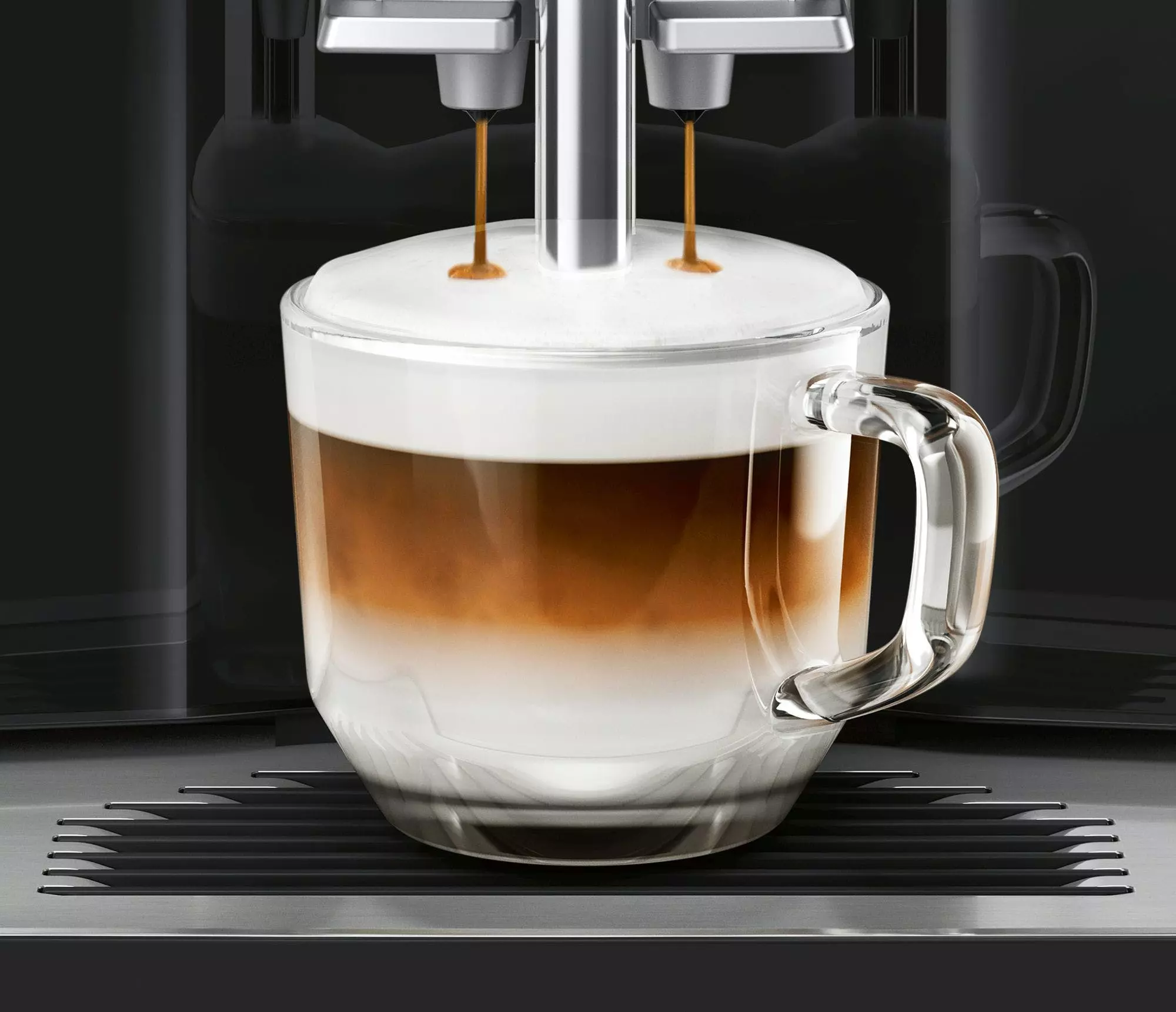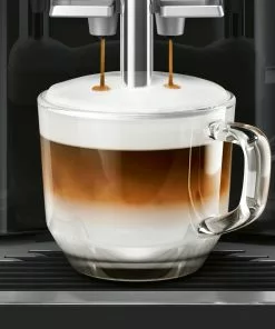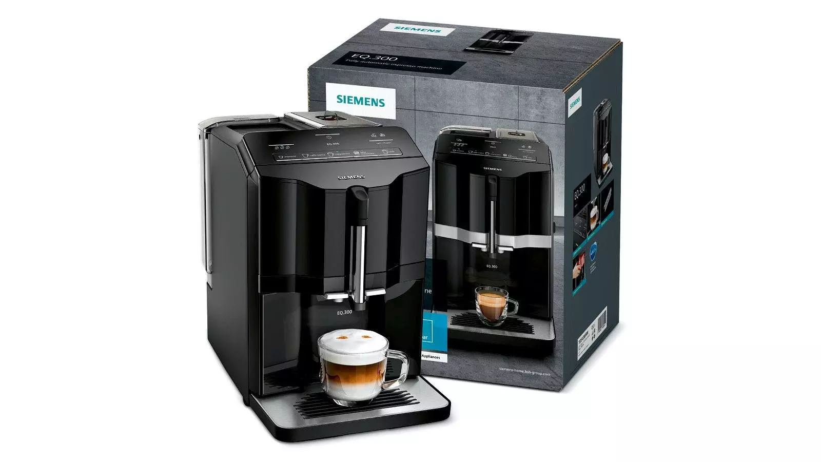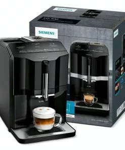 Siemens EQ.300 TI35A209RW. Produkttyp: Espressomaschine, Kaffeezubereitungstyp: Vollautomatisch, Fassungsvermögen Wassertank: 1,4 l, Kaffee-Einfüllart: Kaffeebohnen, Behälter für gebrühten Kaffee: Tasse, Kapazität (in Tassen): 1 Tassen, Eingebautes Mahlwerk. Leistung: 1300 W. Produktfarbe: Schwarz