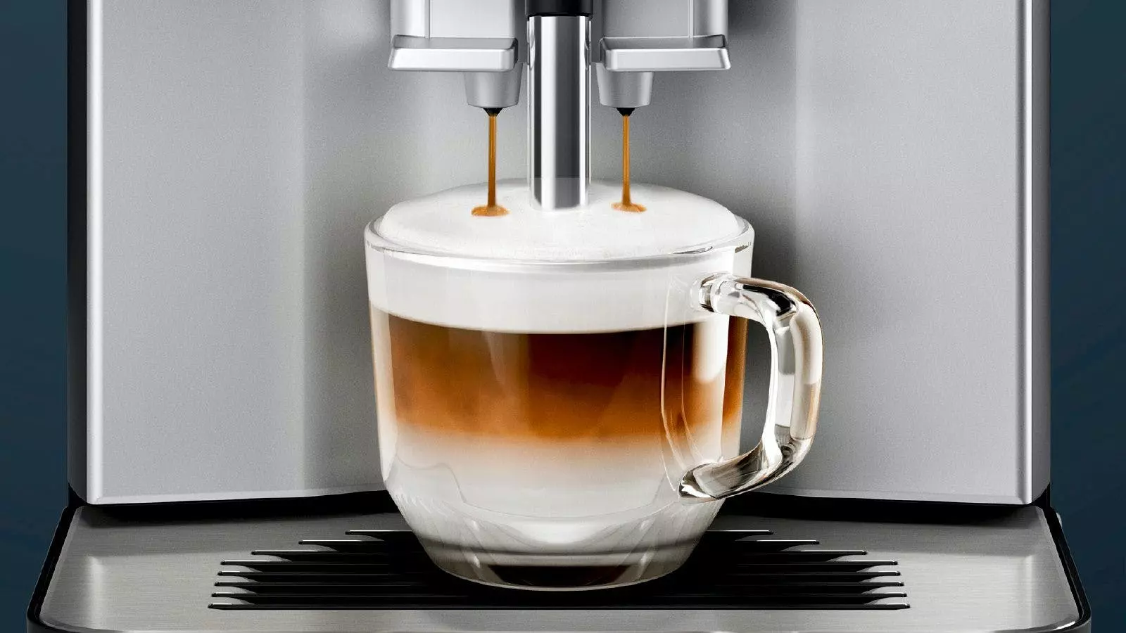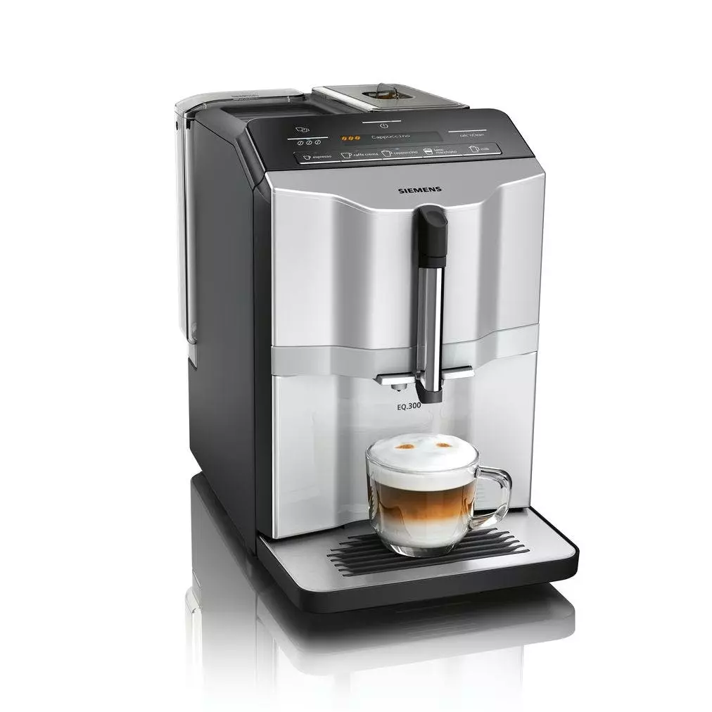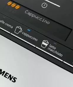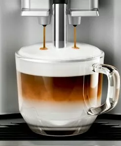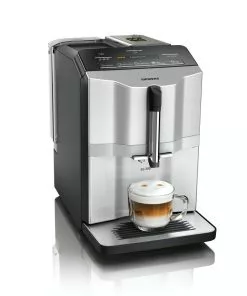 Siemens TI353501DE. Produkttyp: Filterkaffeemaschine, Kaffeezubereitungstyp: Vollautomatisch, Fassungsvermögen Wassertank: 1,4 l, Kaffee-Einfüllart: Kaffeebohnen, Behälter für gebrühten Kaffee: Tasse, Kapazität (in Tassen): 2 Tassen, Eingebautes Mahlwerk. Display-Typ: LCD. Leistung: 1300 W. Produktfarbe: Schwarz, Edelstahl