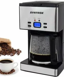 Edelstahl Kaffeeautomat mit Timer – mit Freude in den Tag starten Ein köstlicher Kaffee am Morgen vertreibt Kummer und Sorgen. Vor allem bringt ein Kaffee die müden Geister in Wallung. Dafür sollte aber eine praktische und hochwertige Kaffeemaschine zur Verfügung stehen, mit der Sie ganz bequem auf Knopfdruck Kaffee kochen können. Hier auf der Seite von Syntrox Germany erhalten Sie einen praktischen Kaffeeautomaten mit Timer aus Edelstahl, der nicht nur edel aussieht, sondern auch ein Plus an Komfort mit sich bringt. Mit solch einer Kaffeemaschine wird jeder Start in den Tag zu einer wahren Freude. Schauen Sie sich das edle Schmuckstück an. Das sollte in einer modernen und gut ausgestatteten Küche fehlen. Bestellen Sie sich die Kaffeemaschine mit Timer aus dem Hause Syntrox Germany und Sie werden ab sofort den Kaffee genießen können. Die Besonderheiten des Kaffeeautomaten aus Edelstahl Solch eine Kaffeemaschine von Syntrox Germany mit Glaskanne ist schon etwas fürs Auge. Aber viel wichtiger sind natürlich das Ergebnis und die Funktionen, die solch eine Kaffeemaschine mit sich bringt. Am frühen Morgen ein duftend frischer Kaffee direkt nach dem Aufstehen, das lieben Sie? Dann werden Sie sich über die Edelstahl Kaffeemaschine mit Timer freuen. Sie können nämlich mit wenigen Klicks an der Kaffeemaschine einstellen, wann Kaffee für wie viele Tassen automatisch gekocht werden soll. Stellen Sie also abends den 24 h Timer der 1.000 Watt starken Kaffeemaschine mit Glaskanne ein, um am Morgen aufzustehen und schon den Duft des Kaffees in der Nase zu verspüren. Folgende Extras bietet der Kaffeeautomat von Syntrox Germany: LCD Anzeige Brühfunktion von maximal 1.000 Watt Pulvergeeignet Automatische Abschaltfunktion Wasseranzeige für Wassertank Der Kaffeeautomat von Syntrox Germany aus Edelstahl mit Timer und Filter hat also alles, was Sie sich wünschen können. Versehen ist die Kaffeemaschine natürlich auch mit einem Überhitzungsschutz, sodass diesbezüglich nichts passieren kann. Mit einem Gewicht von 6 Kilogramm können Sie die Kaffeemaschine auch bequem transportieren. Vielleicht soll die Kaffeemaschine mit Filter mal an eine andere Stelle gestellt werden. Mit wenigen Handgriffen haben Sie das erledigt. Für Kaffeeliebhaber ist diese Kaffeemaschine eine richtige Augenweide und praktisches Equipment für den Küchenbereich. Einfach die Kaffeemaschine mit Timer bestellen – schnell erledigt Der Aufwand, um an solch eine schicke Kaffeemaschine mit Glaskanne für viele Tassen Kaffee zu kommen, ist sehr gering gehalten. Sie sind nur wenigen Klicks im Syntrox Shop davon entfernt. Klicken Sie einfach die Kaffeemaschine an. Danach wählen Sie die gewünschte Anzahl aus und schieben das Produkt in Ihren persönlichen Warenkorb. Danach registrieren Sie sich im Shop. Falls Sie schon einmal bestellt haben, melden Sie sich einfach mit Ihren Zugangsdaten an. Im nächsten Schritt wählen Sie Ihre bevorzugte Zahlungsmethode aus. Abschließend kontrollieren Sie nochmal all Ihre Daten und senden die Bestellung an Syntrox Germany ab. Es ist also denkbar einfach erledigt. Vielleicht benötigen Sie auch noch andere Produkte für die Küche. Im Sortiment finden Sie zahlreiche Gerätschaften, die den täglichen Ablauf wesentlich einfacher machen. Es gibt unter anderem Mini Kühlschränke, Mini Backöfen und Mixer. Benötigen Sie hochwertige neue Technik für Ihre Küche, sollten Sie also einfach einmal ganz in Ruhe auf Shoppingtour gehen. Rasch werden Sie die Produkte erhalten, sodass Sie nach kurzer Zeit die Produkte für die Küche in Funktion bringen können. Probieren Sie es aus und bestellen sich nun die Kaffeemaschine aus Edelstahl mit Timer und vieles mehr bei Syntrox Germany online. Eigenschaften: LCD Anzeige, max. Brühfunktion der Leistung: 1000 W Füllmenge Glaskanne / Wassertank: 1,8 L / 12 bis 15 Tassen, Kabellänge: ca. 75 cm, Farbe: Schwarz, Edelstahl Gewicht 2,8 Kg, Für Pulver geeignet, Überhitzungsschutz, automatische Abschaltung, Warmhalteplatte bleibt 40 Minuten nach