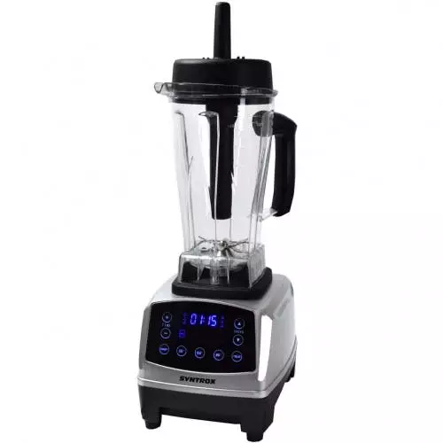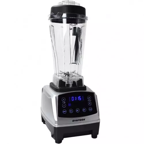 Digitaler Küchenmixer von Syntrox Germany – leistungsstark und praktischEs gehören so viele verschiedene Küchengeräte in eine gut aufgestellte Küche. Hantieren Sie oft und gerne in dem Küchenbereich umher und backen und kochen gerne, benötigen Sie wichtiges Equipment wie Backofen und Küchenmixer. Natürlich können auch manche Produkte irgendwann kaputtgehen und müssen ersetzt werden. Möchten Sie ein altes Gerät austauschen oder sich allgemein erst einmal ordentlich ausstatten, sollten Sie genau umschauen. Hier bekommen Sie Technik pur in hoher Qualität. Wie wäre es mit dem hier angebotenen Küchenmixer digital mit 1500 Watt und 6 scharfen Edelstahlklingen? Mit dem Standmixer werden Sie Ihre Freude haben und gerne verschiedene Köstlichkeiten zerkleinern. Schon alleine das Design ist sehr sehenswert, sodass es sich lohnt, zweimal hinzuschauen. Solch ein Mixer integriert sich wunderbar in das Küchenbild und rundet es möglicherweise optimal ab. Doch nicht nur das Optische zählt. Viel wichtiger sind die Funktionen, die solch ein Standmixer mit sich bringt.Hochleistungsmixer in top Qualität – für jede Situation gut geeignetMixer ist nicht gleich Mixer. Sie sollten immer genauer hinschauen, wenn Sie sich für neue Küchengeräte entscheiden. Vielleicht ist es Ihnen wichtig, dass Sie ein Gerät mit einer digitalen Anzeige zur Verfügung haben. Eventuell reicht Ihnen aber auch eine einfache Anzeige aus. In diesem Bereich geht es schon los. Dieser Standmixer aus dem Hause Syntrox Germany ist mit einer Digitalanzeige versehen, die sich auch wunderbar ablesen lässt. Außerdem ist das Gerät sehr funktionell. Sie können folgende Spezialitäten zerkleinern: • Harte Lebensmittel • Weiche LebensmittelDa der Küchenmixer mit einem kraftvollen Motor versehen ist und die Edelstahlklingen hochwertig sind, ist es für den Profi-Mixer kein Problem, auch harte Köstlichkeiten rasch zu zerkleinern. Sie können mit dem Küchenmixer Shakes, köstlichen Smoothie, Fruchtsäfte und Suppen anfertigen. Sicherlich werden Sie staunen, wenn Sie den Standmixer in Funktion haben und dieser die Lebensmittel im Handumdrehen zerkleinert. In dem großen Kunststoffkrug, der aus BPA-freiem Kunststoff besteht, können selbst größere Mengen Obst und Gemüse bearbeitet werden. Der Behälter ist für 2 Liter ausgelegt und bietet daher jede Menge Platz. Für einen sicheren und festen Stand sorgen übrigens die rutschfesten Gummifüße am Küchenmixer.Einfach in der Bedienung – der praktische MixerDie Bedienung des hochwertigen Profi-Küchenmixers mit 1500 Watt und 6 Edelstahlklingen gestaltet sich sehr einfach. Es sind einige Programme gespeichert, die Sie mit einem Klick aktivieren können. Unter anderem gibt es ein Programm für Saucen und ein Programm für Smoothies. Da kann bei der Zubereitung im Prinzip nichts schieflaufen. Sie haben selbstverständlich auch die Möglichkeit, einen Timer einzustellen und die Geschwindigkeit nach Belieben zu regeln. Stellen Sie einfach so ein, wie Sie es sich vorstellen und gerade gebrauchen können. Sobald Sie die zu zerkleinernden Lebensmittel in den Kunststoffbehälter gegeben haben, verschließen Sie ihn mit dem Deckel. Nun kann der Küchenmixer seine Arbeit aufnehmen und die Früchte zerkleinern. So einfach ist es, Suppen, Smoothies und Co. zuzubereiten.Eigenschaften: • Umdrehungen: 40000 U/Min • Gewicht: 5.5kg • 2 Liter-Kunststoffbehälter aus BPA-freiem Kunststoff • 7 Programme • Power in Watt: 1500 • Kabellänge: 1,5 m • Farbe: silber, schwarz